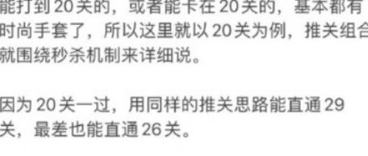 能打到20关的,或者能卡在20关的,基本都有时尚手套了,所以这里就以20关为例,推关组合就围绕秒杀机制来详细说。