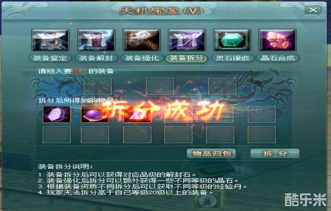 玩家可千万要注意了,万万不能把自身需要的高端装备给一不小心拆分了哦,那可是追悔莫及!