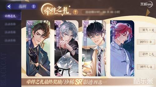 若社长大人们因事务繁忙而暂时无暇打理黑猫社也无需担心。超过连续15天未登录游戏,再次回归游戏后将触发“牵绊之礼——回归活动”,完成系列任务即可获得丰厚道具奖励,达成最终目标还可获得珍稀SR影迹四选一礼盒!即便短暂未见,他也依然在黑猫社守候着你!