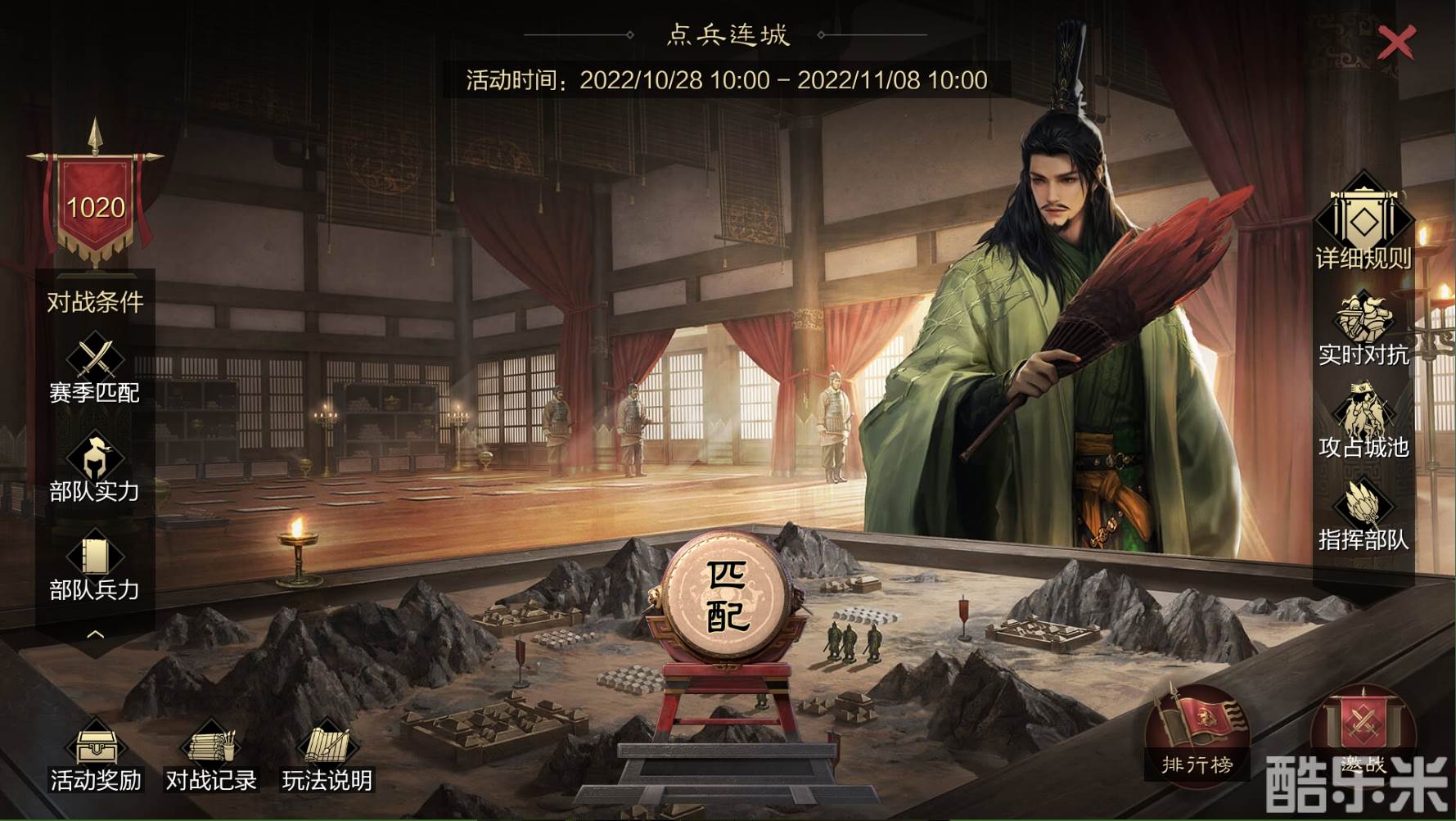 ·各位主公可以在指定时间段内(活动期间每天12:00-14:00及19:00-21:00)进行匹配对弈,系统将依据玩家的活动积分,进行随机匹配