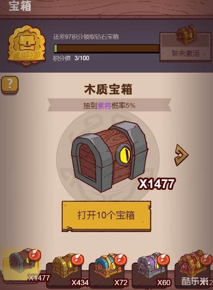 木质宝箱1积分,青铜宝箱10积分,黄金宝箱20积分+铂金宝箱50积分。