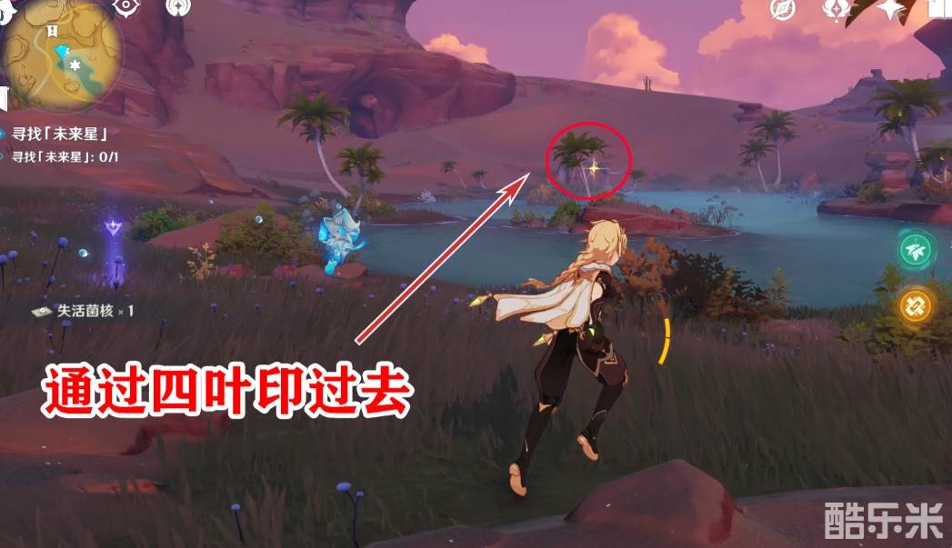 击败蕈兽后,视角会自动偏移到一个有四叶印的方向,通过一段四叶印过去