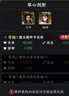 3个羁绊都可以为吕布加不少的属性(随着突破等级上升而增加)其中优先选择貂蝉,其次张辽,然后华雄。两者前的属性都可以为吕布增加最高的属性!