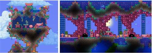 除此以外,游戏中还新增加了“便便块”、“珊瑚礁块”等新的道具以及相关的家具套装,供玩家自由发挥建造。在1.4.4版本中,除了增加全新道具以外,一些以前不能被悬挂和放置在平台上的物品也能够由玩家自行处理。