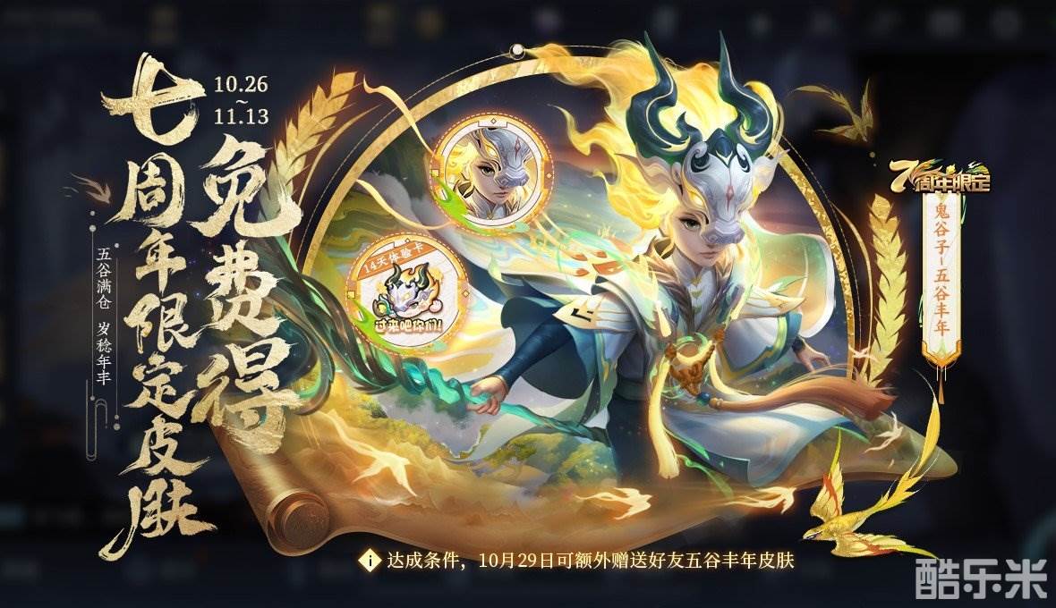 七周年限定皮肤:鬼谷子-五谷丰年 将于10月29日10:00开启碎片商店兑换~