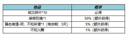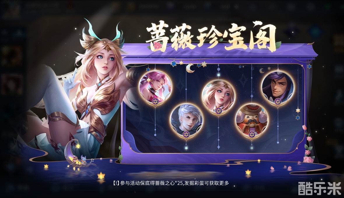 活动奖励:保底可获得蔷薇之心*25,发掘彩蛋可领更多!还有概率获得珍宝阁皮肤自选宝箱,直接兑换皮肤!