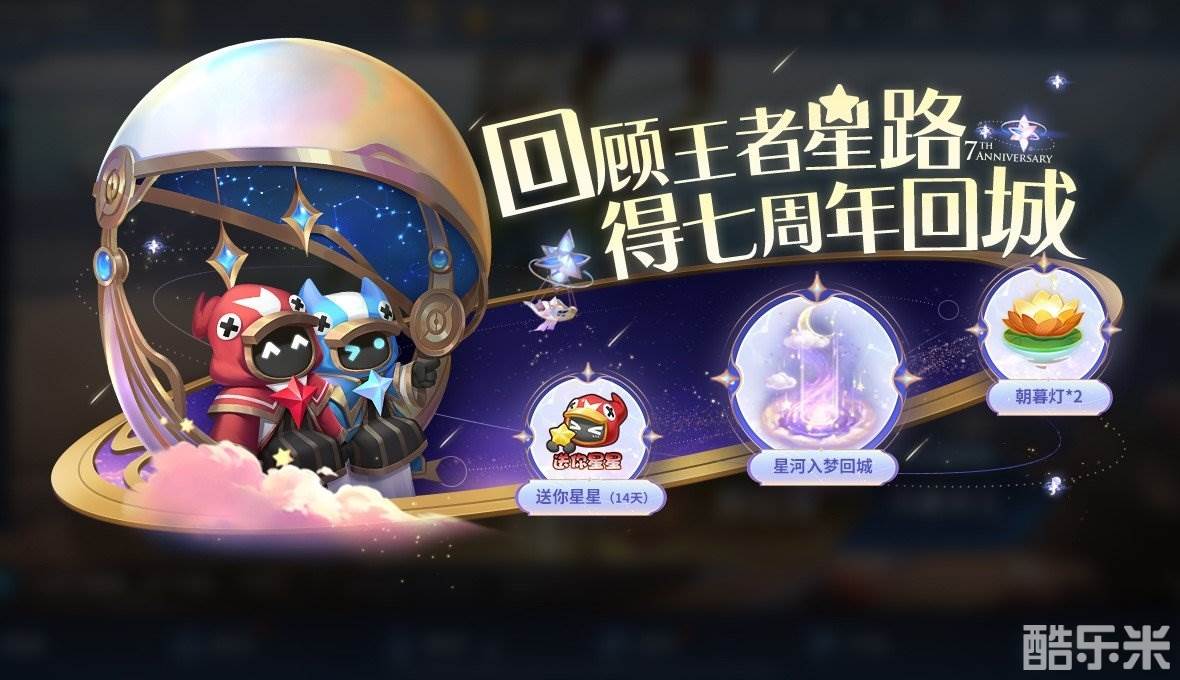 活动奖励:查看数据回顾,点亮星路送七周年-星河入梦回城特效、限时表情-送你星星。