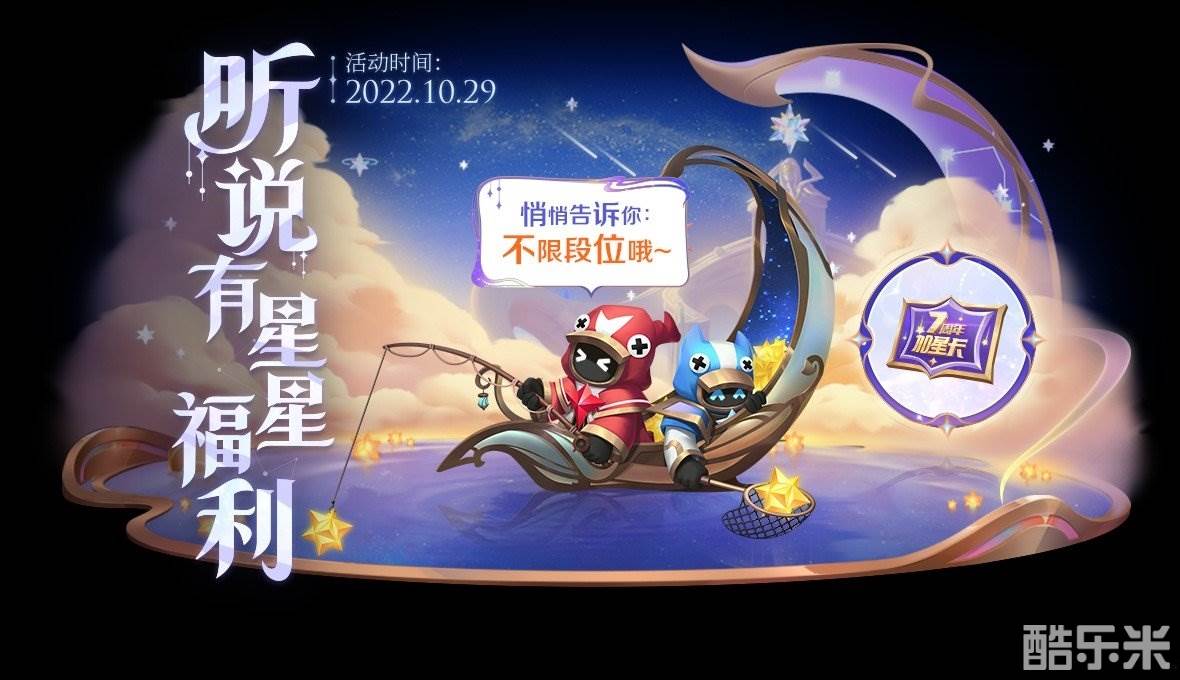 活动奖励:10月29日当天登录游戏就送七周年胜利加星卡;(道具在排位胜利后会自动使用并额外获得一颗星,不限制段位,当前赛季有效,请玩家们尽快使用)