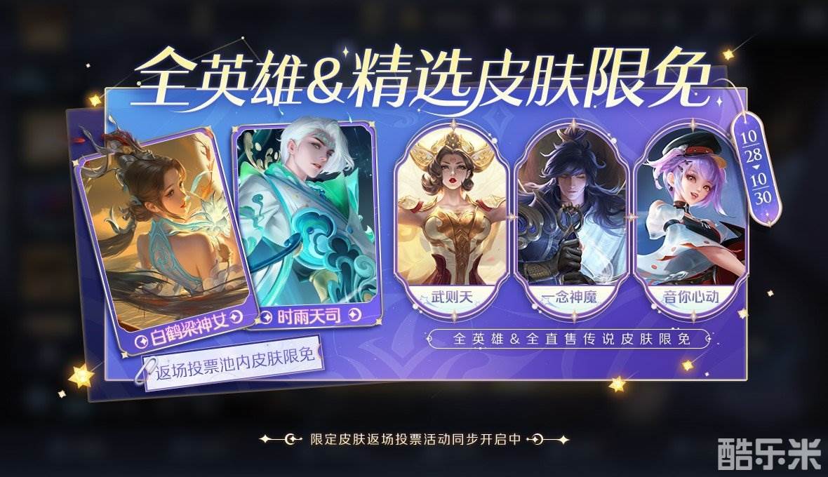 七周年庆狂欢!全英雄、全直售传说皮肤、返场投票池内皮肤限免!