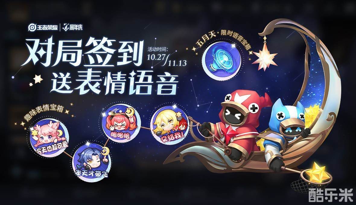 活动期间累计签到/参与对局即可领取五月天限时语音宝箱和荣誉之战表情礼包等好礼!