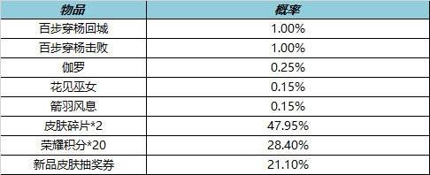皮肤碎片&积分自选礼盒:打开礼包可任意选择以下奖励之一:荣耀积分*10或皮肤碎片*1