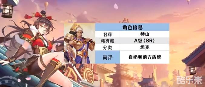 3.赫山,A级(SR)分类为坦克,拥有自奶和前方盾牌技能。