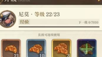 角色等级是前期战力提升最快且没有之一的数值所以一定要注意,本游戏中人物的等级经验依靠面包来获取(俗称经验书),消耗速度非常快且需求量只会越来越多,开荒关卡的难度大多也都设定在依靠等级就能够顺利碾压的程度,,一定要根据自己开局的角色阵容做好分配。