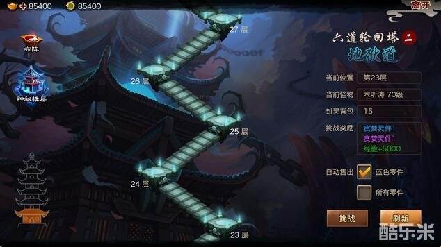 六道轮回是非常经典的爬塔系统,玩家依靠自身实力挑战每层的怪物获取奖励。奖励包括经验及封灵。