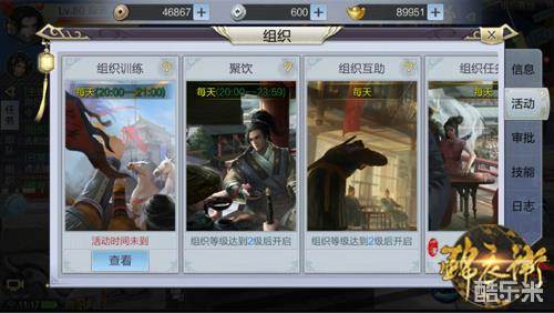 每一个组织都有相应的活动,在组织训练、聚饮、组织互助和组织任务这一系列活动,玩家可以通过这些活动获得大量经验和组织贡献值。