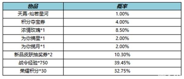 王者荣耀灿若星河天幕礼包抽奖概率一览