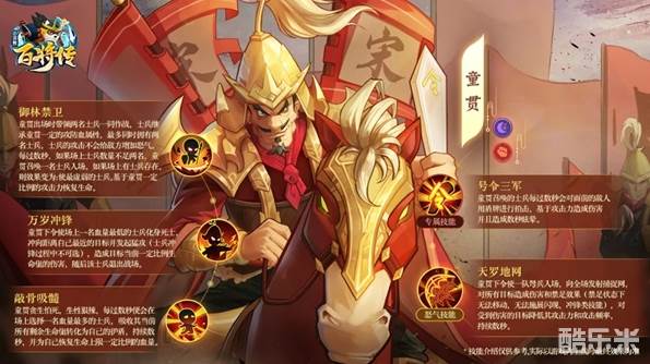 游戏中,童贯是恶人阵营的力量型英雄。作为执掌中军的三军主帅,童贯仍依旧贪生怕死,不顾士兵的生命,他不但会命令场上血量最低的士兵,让其化身死士向距离自己最近的目标发起冲锋;甚至还会选择血量最多的士兵,牺牲其所有剩余生命值,转化成自己的护盾。