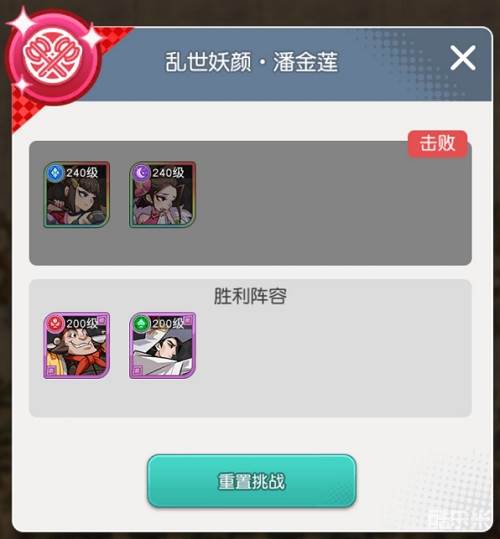 2、敌方(神话扈三娘+神话潘金莲)VS我方(精英+王英、精英+林冲),站位:双前排,该阵容应对关卡难度:★★★,一次性过关几率:45%。