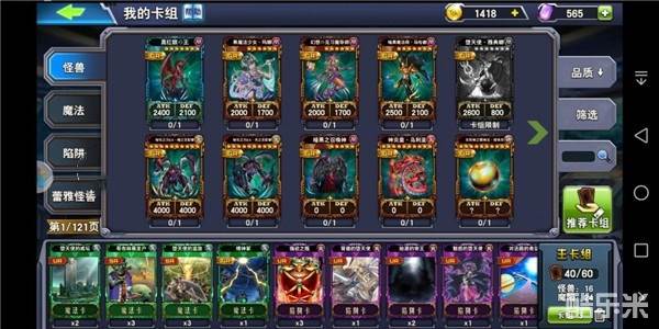 魔法陷阱:相对于怪兽来说魔法陷阱的获取就简单多了,追放3张,祭坛2/3张,背德1,魅惑1就足够了。这些卡只需要正常的去抽狂欢就很容易得到,主要说一下魅惑的堕天使,这张卡需要升级伊西斯到90级,但是效果也很厉害,从手牌场上将一张堕天使的怪兽支付,选择对方场上一张怪兽在本回合获得控制权,你既可以把这只怪兽做祭品,也可以让这只怪兽攻击对方怪兽,但是要注意只有一回合控制权,如果不把他弄没就亏了。基本开局就是追放检索,低价过牌,经过几个回合的过牌积累,瞬间糊牌从墓地复活堕天使进行秒杀,糊牌之后一回合特招五张堕天使轻而易举。