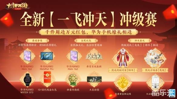 在此次的飞升专服【一飞冲天】里,不但将有全新的“一飞冲天”冲级赛等待侠士前来参与,开服三周后在积分排行榜前500名的侠士将有机会获得华为Mate Xs 2 8GB+256GB折叠屏手机等丰富豪礼;冲级赛进行过程中,全服达到不同进度还可以获得华为锦鲤礼包,侠士有机会抽取华为手机,更能赢取各种精美周边!