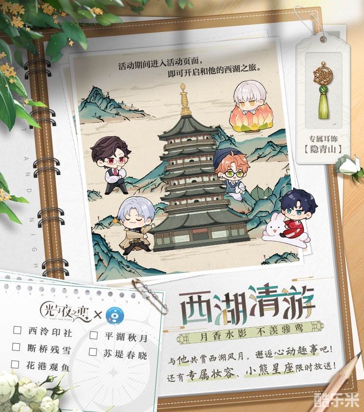 大家好,光与夜之恋西湖清游活动怎么玩?光与夜之恋竟然和西湖景区联动啦!这次的联动活动叫西湖清游,很多玩家都纷纷询问活动持续多久?怎么玩?酷乐米小编为大家整理了一下活动的一些玩法规则和活动时间,还为大家带来了一些简单的玩法攻略,大家一起看看吧。
