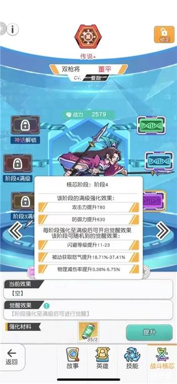 董平作为前排输出,生存和输出属性都是需要的,一直到核芯四,碰到数值高的都可以留下来。做到核芯5/6,一定是需要董平作为主力了,建议走暴击流提升压血线能力和斩杀能力。核芯5优先暴击率,其次三枪的伤害;核芯6优先暴击率,其次爆伤。