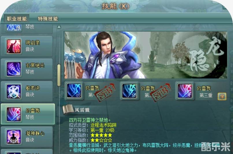 比如龙隐的风雷戮在第一重仅仅只是造成法术伤害,但一旦学到了第二重可以造成目标水属性抗性减少,而到了第三重更是能百分百造成目标迟缓1秒,从一个单纯伤害技能进化到了半控制技能。