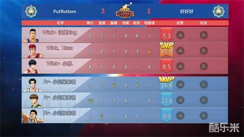上届季军好好好本轮将要迎战知名主播队伍PutRottem,上来第一局PutRottem就很自信的在BP上放出了集训阿神,好好好也没有谦让,直接揽入阵中。虽然Lisa在篮板球和地板球上已经做到了极致,但无奈双拳难敌四手,在更为整体的PutRottem面前先丢一局。第二局好好好顶住压力扳回一城后,比赛来到了提升士气的天王山之战。第三局双方比分一直交错上升,这次是汉堡站出来了,5篮板5盖帽扛着好好好一直紧咬比分。决胜球小邪成功找到空位绝杀机会,集训阿神一个前突投篮是PutRottem全队都没想到的。但天公不作美,空位绝杀打铁,PutRottem幸运的获得第三局胜利。第四局的悬念从BP出来那一刻就不太多了,虽然阿呆层淡出过一段时间,但别忘了他依旧是前联盟第一防守球员。集训流川被阿呆全场6记盖帽彻底锁死,PutRottem以3-1的比分顺利晋级4强。