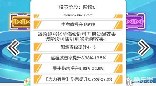 6. 核芯阶段6,同上推荐暴击伤害提升/【大力轰拳】伤害提高,进一步提高输出上限,尽可能做到一拳打出倒一人,然后乘胜追击连续出拳清场。