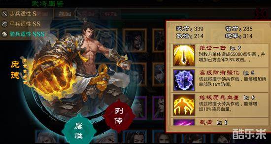 终极骑兵血量(Lv6):该武将擅长骑兵作战,能够增加10%的骑兵血量。
