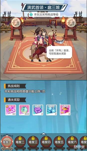 汴京战纪每期有多个难度章节,由易到难,每章节内含多场战斗,每场战斗可上阵人数条件各异