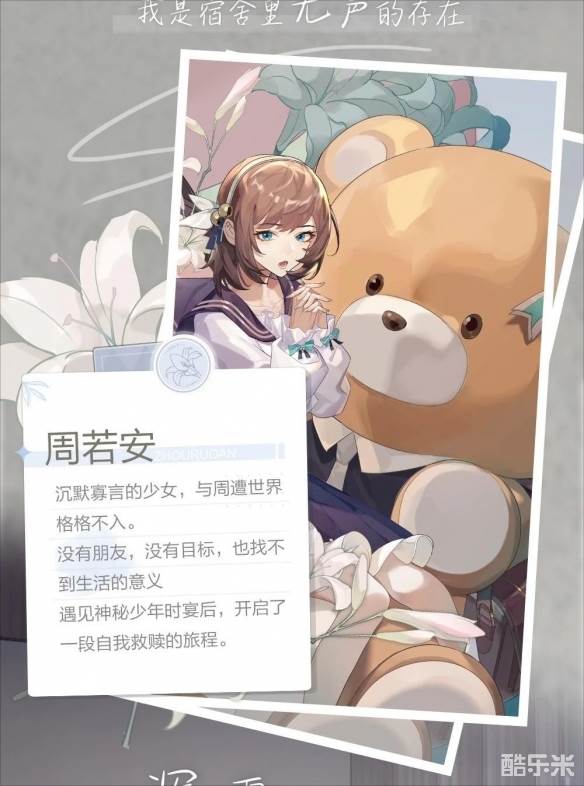 玩家们饰演的女主是腼腆寡言的少女周若安。初入大学校园的她,因为生活中的一些变故一直郁郁寡欢、沉默寡言,她找寻不到生活的意义和方向,浑浑噩噩地消磨着每一天。直到一个神秘人时宴的出现,她的生活终于步入了正轨。