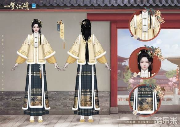 看着寒水中被阳光照的熠熠生辉的金鳞,再结合心中所念及的神话传说,云锦楼师傅回家便打造了忆仙姿系列全新时装·金鳞非池,愿每位穿上它的少侠都能青云得志,诸运亨通!