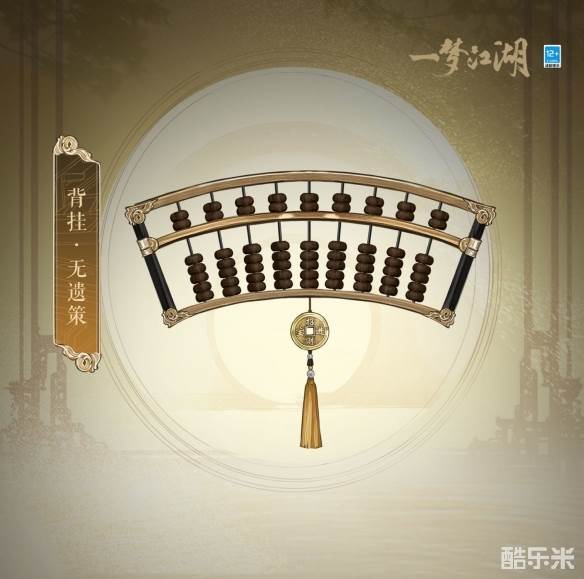 钱要努力赚,也要算着花,在背挂·无遗策上还有一枚刻着招财进宝的铜钱从算盘上垂下,寓意少侠们的小钱钱都能越算越多。