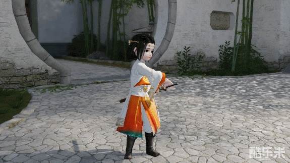 小女侠则编起俏皮的双麻花辫,金叶装饰的发冠端庄又可爱,双袖与腰间均使用蝴蝶结系法,展现了少女的活泼烂漫。流线型裁剪的轻纱裙摆好似鱼尾般垂下,层次分明,十分灵动。
