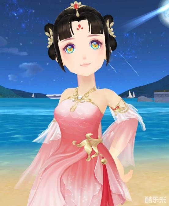 眨巴的大眼睛里是只展翅翩翩起舞的橙黄色蝴蝶,给人若隐若现的隐约美。腰间挂上红色的流苏,象征着好运连连。袖口与裙摆的设计,给人以仙气飘然之感,又尽显浪漫气息。