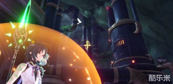 9.旋转完机关后,回头,借助四叶印飞上去,再通过管道爬上去