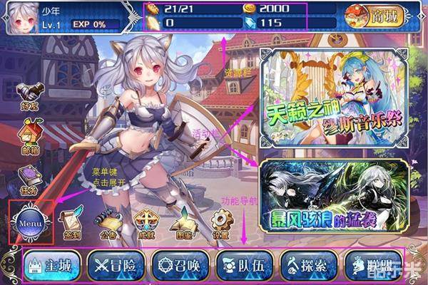 此界面为游戏主界面,图中标记位置功能众多,下面小编为大家一一讲解;