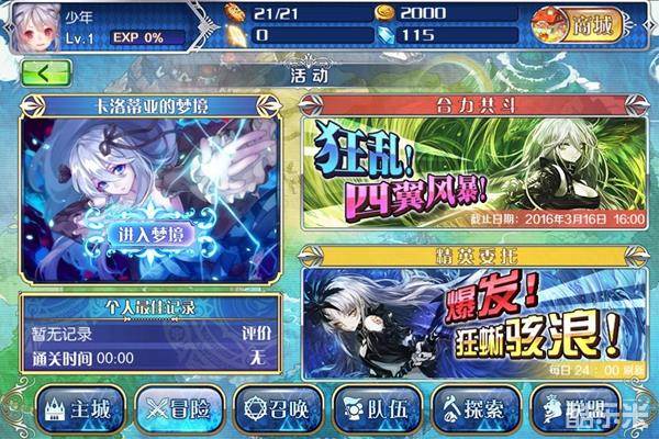 活动界面中,“卡洛蒂亚的梦境”是固有玩法,右侧两个活动会定期更新新的内容。