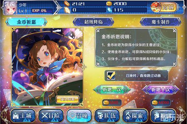 一目了然,使用金币召唤新的小伙伴。