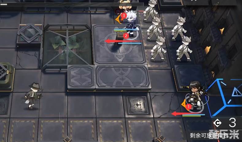 如下图所示位置部署棘刺(向左) → 史都华德(向左)→ 古米。
