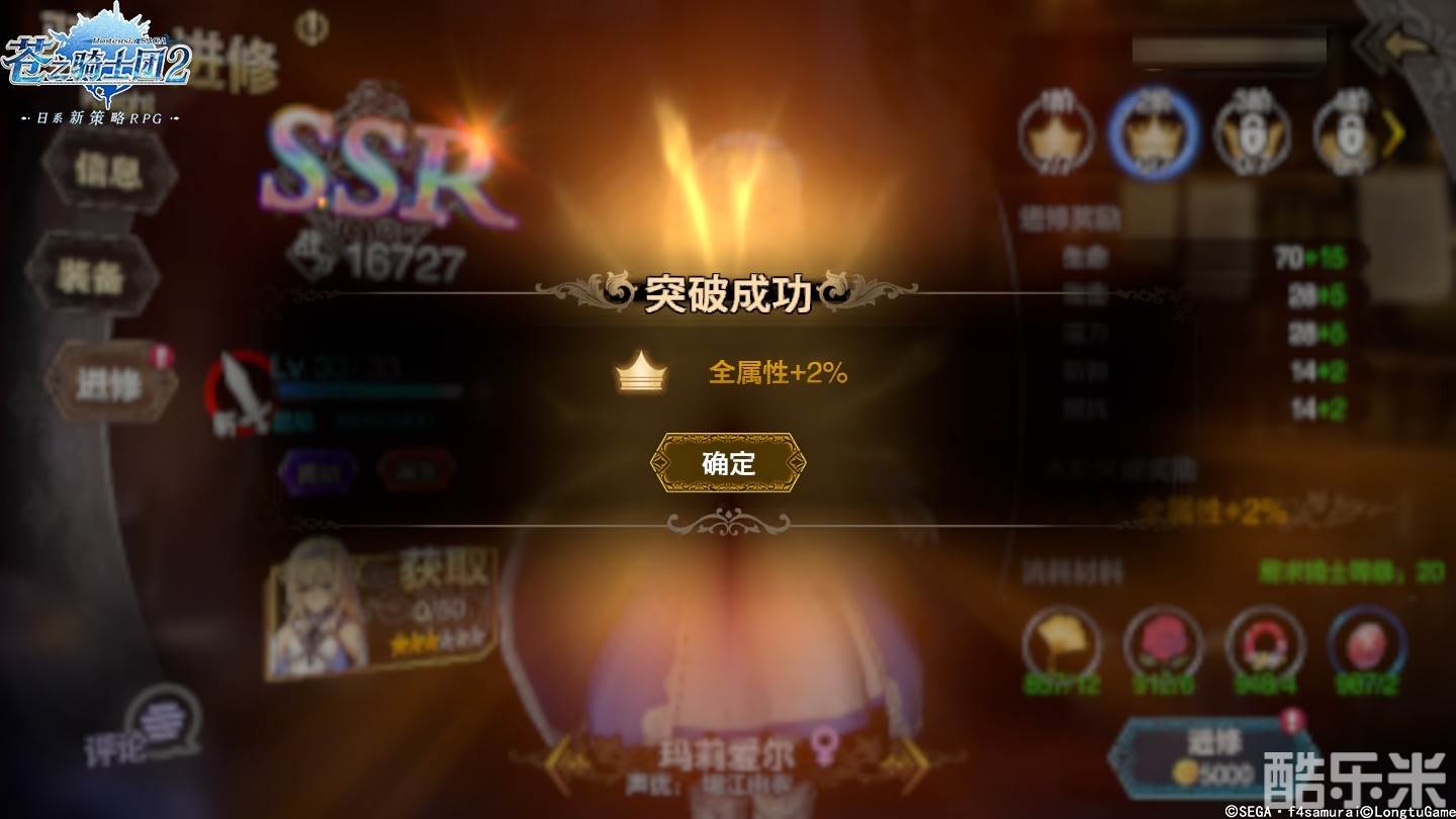 玩家开启该功能后。玩家点击进修按钮,便可看到相应的骑士的进修详情。而该玩法拥有不同的阶段。当一个阶段结束后,便可突破至下一个阶段。而玩家则可以通过收集相应的进修材料进行进修等级的提升。等级达标后便可激活进修突破的按钮,点击突破进行提升来增加角色相应的属性。