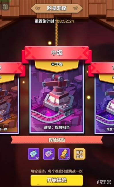 在欧皇洞窟其实是类似于rougelike 玩法,共有三种难度可以选择,在每层找到宝箱后即可获得钥匙通往下一层,最终取得宝藏。