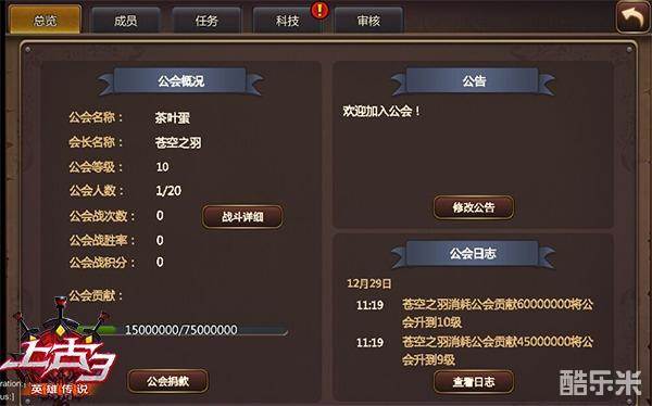 加入公会后,会员是有等级划分的,初始为会员一级。公会成员可以通过做公会任务,提升自己的会员等级,并能获取到一定的公会贡献值。而公会贡献值则最直接影响到公会的等级。