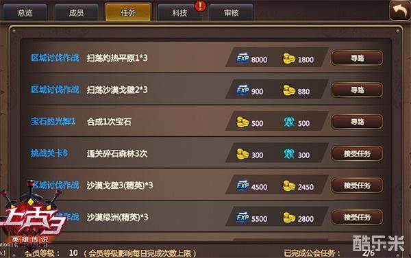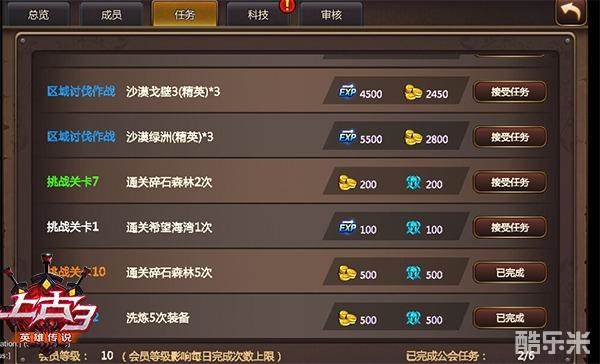 会员等级10级 可接取六项公会任务