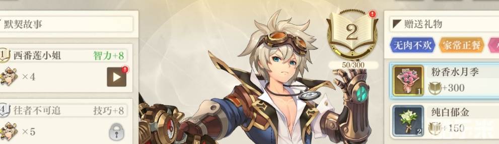 值得一提的是,角色的碎片还能通过默契系统,也就是一般玩家口中的好感度来获得,玩家可以送食物和花解锁好感度,之后会送碎片,观看相应的剧情也会赠送碎片。