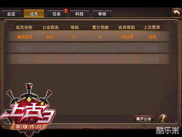 玩家在创建公会成为会长后,有一些公会上的管理权限。对于公会中的成员进行管理审核。