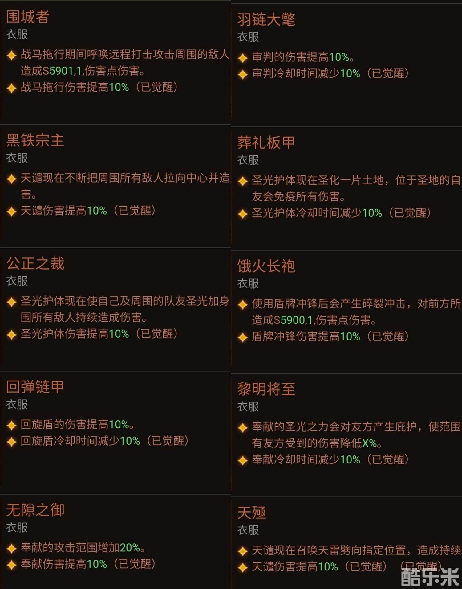 暗黑破坏神不朽圣教军装备觉醒数据分享