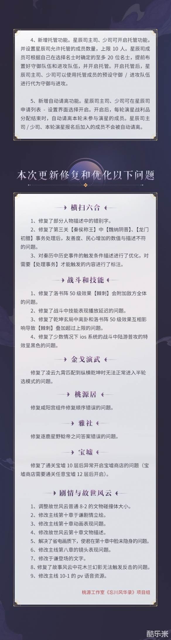修复了部分战斗和技能效果异常、宝墟商店开启异常等问题。