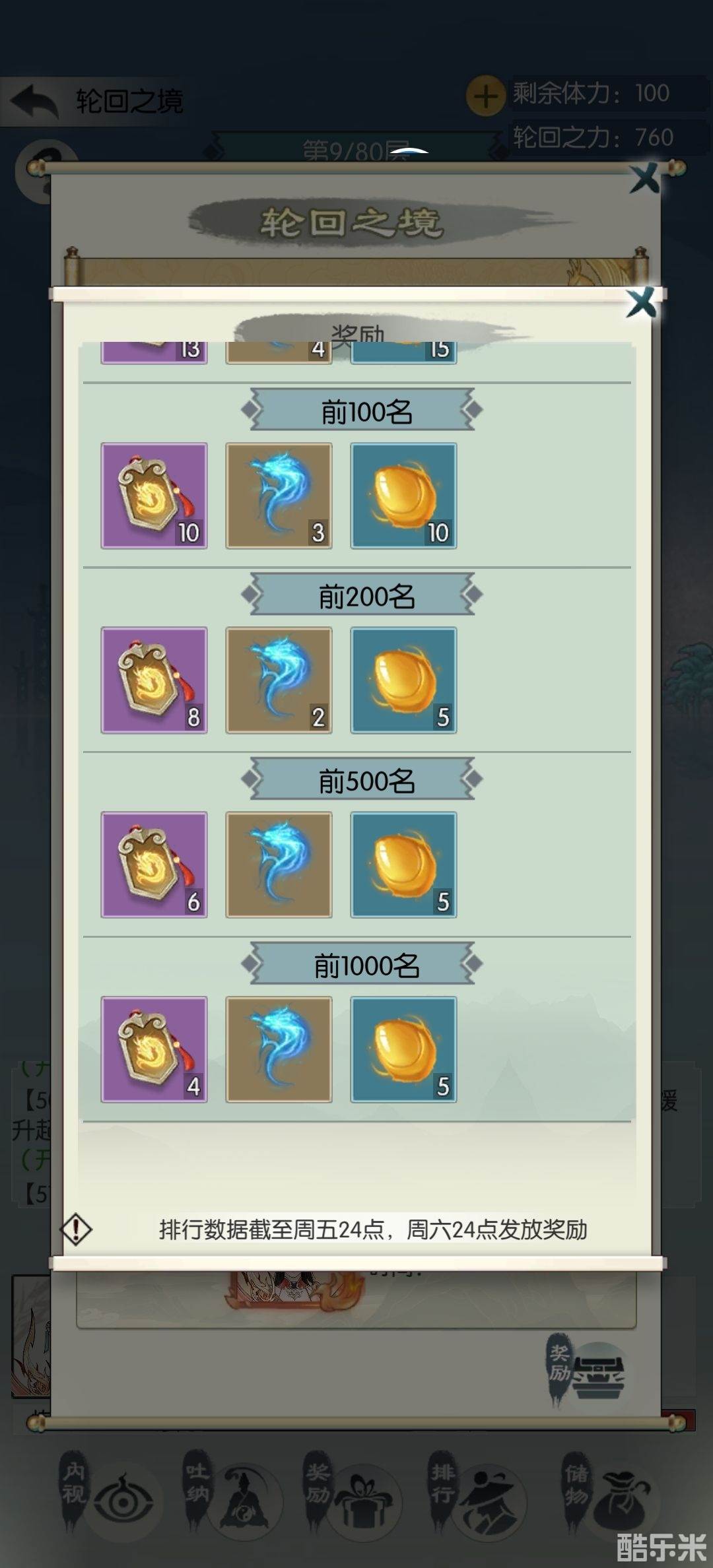 开局小怪属性不高,不点根骨也可以扛得住,所以前期身法推的快,也可以多点一些小怪,升升级。但是切记不要贪多,我这次就是在这吃了大亏,前期浪费太多体力,最后没体力,不然能通关(比如一关五个小怪,你打了两个,关卡就翻出来了,那就可以走了,不用特意刷满)。白嫖玩家在这个地方可以拿到不少日月精粹。前期的轮回之力拿来买技能书,一些闪避相关的,斗转孔雀之类,以及在不卡关的前提下买一些道具,尤其是可以翻牌的旗子,一定要留到大后期用。